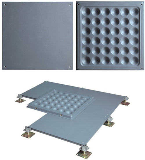全鋼組成,四角獨(dú)立支撐架結(jié)構(gòu),地板底面采用ST14拉伸板,表面選用SPCC硬質(zhì)鋼材,地板表面經(jīng)過導(dǎo)電環(huán)氧樹脂靜電噴塑處理,內(nèi)腔發(fā)泡水泥填充,四角沖角鎖孔。支座采用鍍鋅或鑄鋁模壓成型,絲桿可任意調(diào)節(jié),地板四周成型有切邊與焊接兩種。